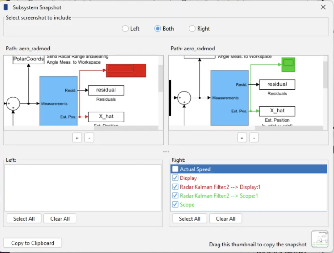 For example, the Kalman Filter subsystem’s name was changed from Kalman Filter to Radar Kalman Filter. This change is filtered out, as you can see by the filter icon in the Attributes Panel.