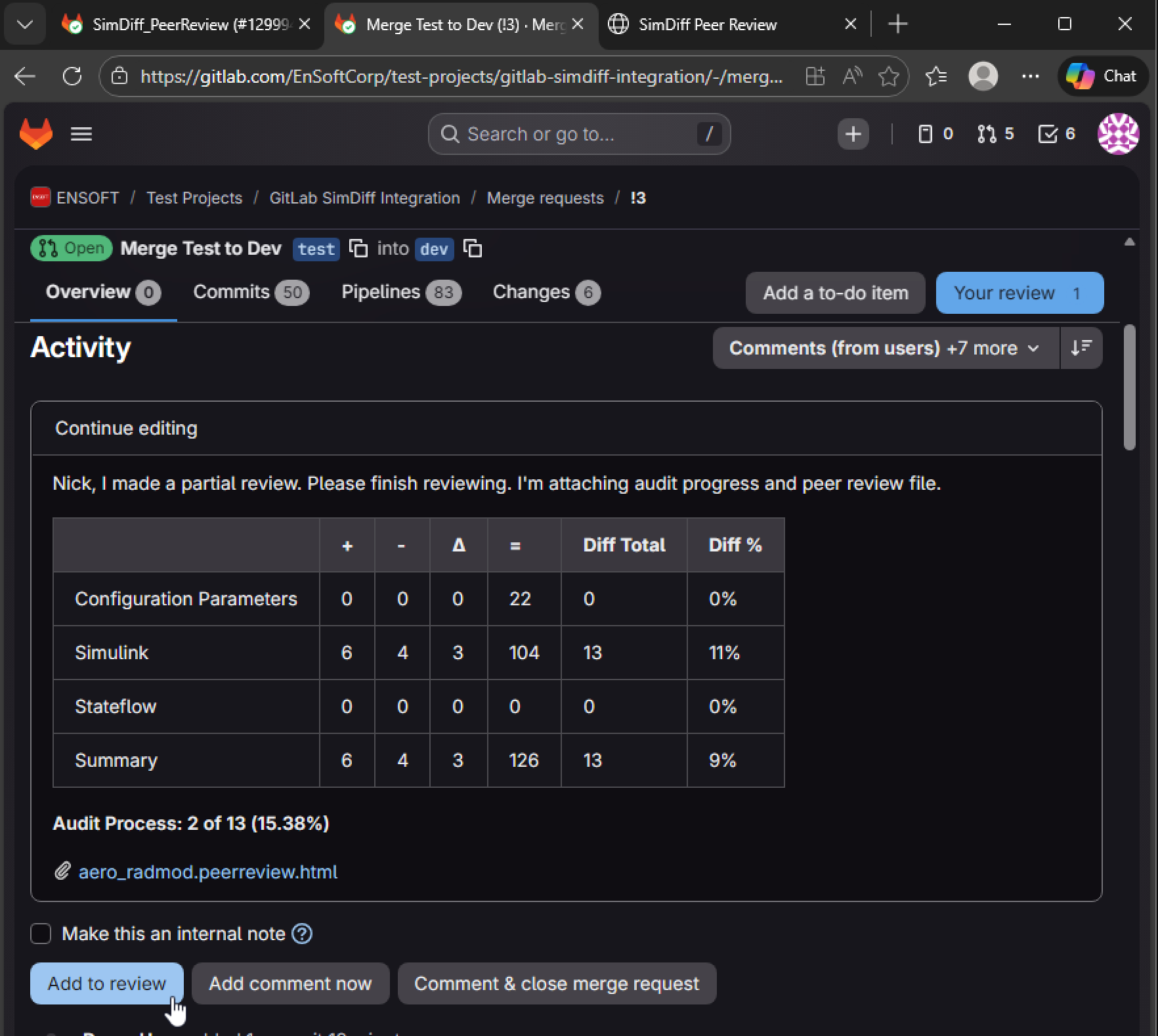 Generate the Peer Review File using SimDiff Workstation or Automation (desktop or pipeline).